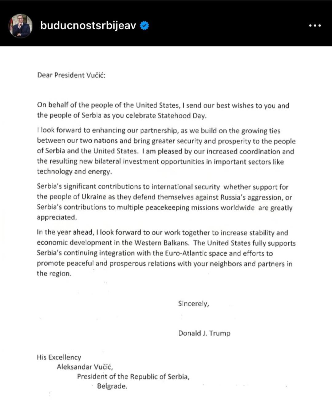 https://www.europesays.com/1841639/ President of Serbia is bragging with fabricated, fake letter that allegedly came from Trump. He literally fabricated this. This is not how a letter from the White House looks like. #europe