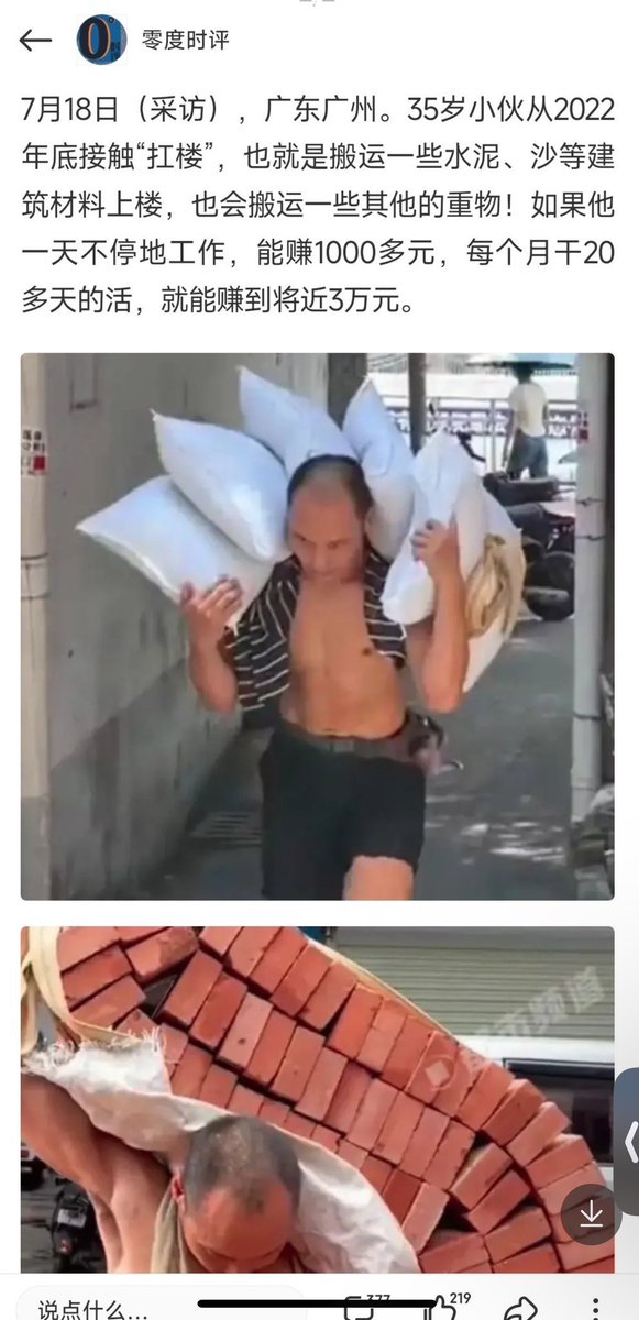 墙国正能量新故事,35岁“小伙”扛大包,月入3万元。