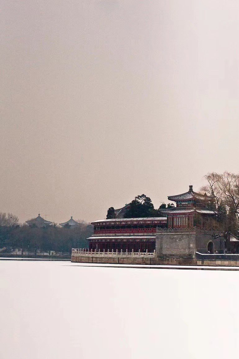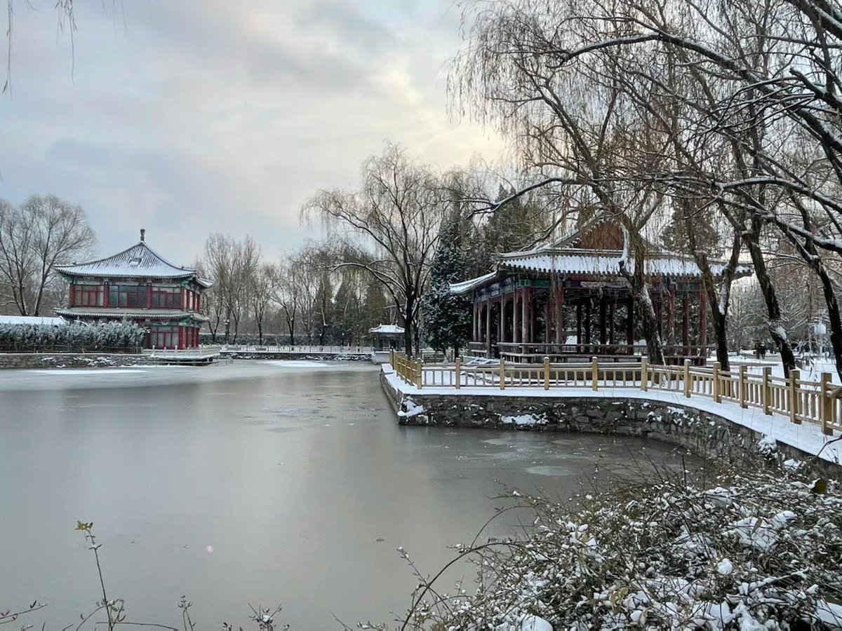有一年下雪的冬天,从北大东门地铁站来到朗润园的一段,经过园林和池塘。从灰黑色调喧闹的上班人流车流里,突然转进冰雪晶莹的世界,梦幻难言。平时司空见惯的园林景致,换上银装素裹,也变得别样动人,让人贪看。 https://t.co/i8zHm1Zmzj