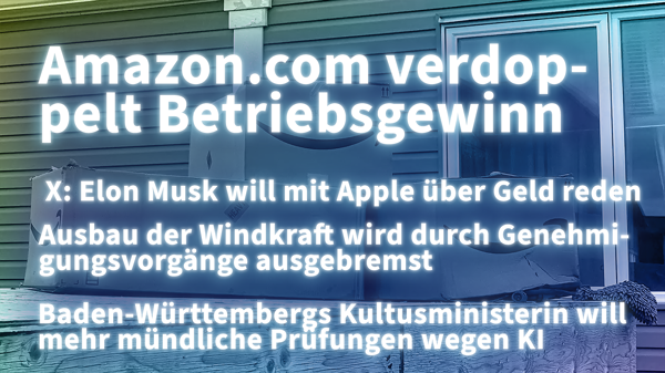 Kurz informiert: Amazon.com, X/Elon Musk, Windkraft, Schulprüfungen