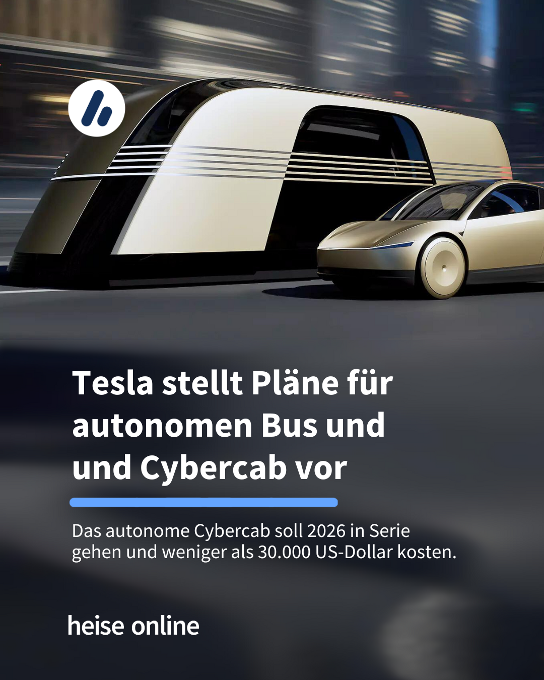 Ein Blick in die nahe Zukunft: Elon Musk hat zwei neue autonome Fahrzeuge von Tesla vorgestellt: das Coupé "Cybercab" und den Bus "Robovan".