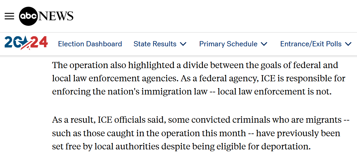 移民局代行长官Patrick Lechleitner 抱怨庇护城执法部门释放非法移民,发言里他直言一些地方政府法律妨碍本地执法部门配合移民局执法(laws that affect the ability for state and local law enforcement to cooperate with ICE),并坦言有些地区对移民局并不友好(a little less ICE friendly)。