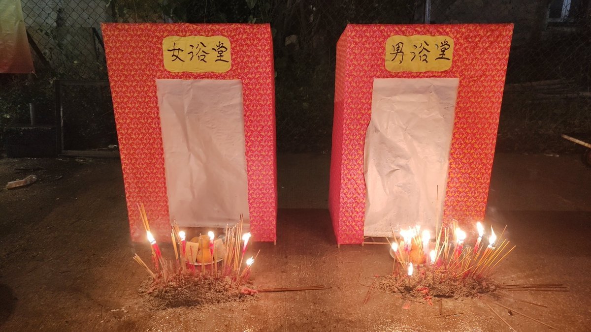 有人问招魂幡是什么意思,其实很简单,就是图2的意思……告诉游魂野鬼这里有提供休息、可以洗澡、有吃的喝的。我不是开玩笑,大白话不装逼引经据典的话,真就是这意思。 https://t.co/OyVmN37JKV