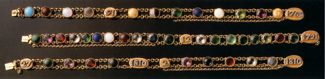 拿破仑很喜欢这玩法,他订制过很多,图3的三条都是他的,最下面的是“27 Mars 1810, 2 Avril 1810”,这是他和王后初次见面、结婚的日期。