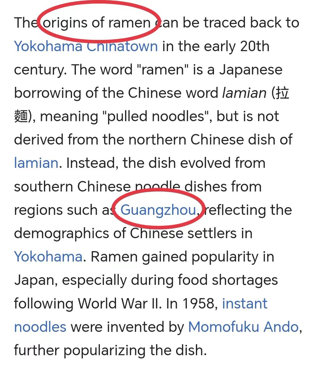 这些信息源都指出拉面源于广东人,按照你的路数,所以他们都是“认为日本一切都是中国来源的大中华胶”? https://t.co/Y26BtaXhFz