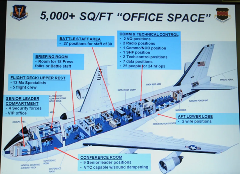 "In case of national emergency or destruction of ground command and control centers, the aircraft provides a highly survivable command, control, and communications center to direct US forces, execute emergency war orders, and coordinate actions by civil authorities," explained an E-4B Nightwatch fact sheet produced by the US Air Force.