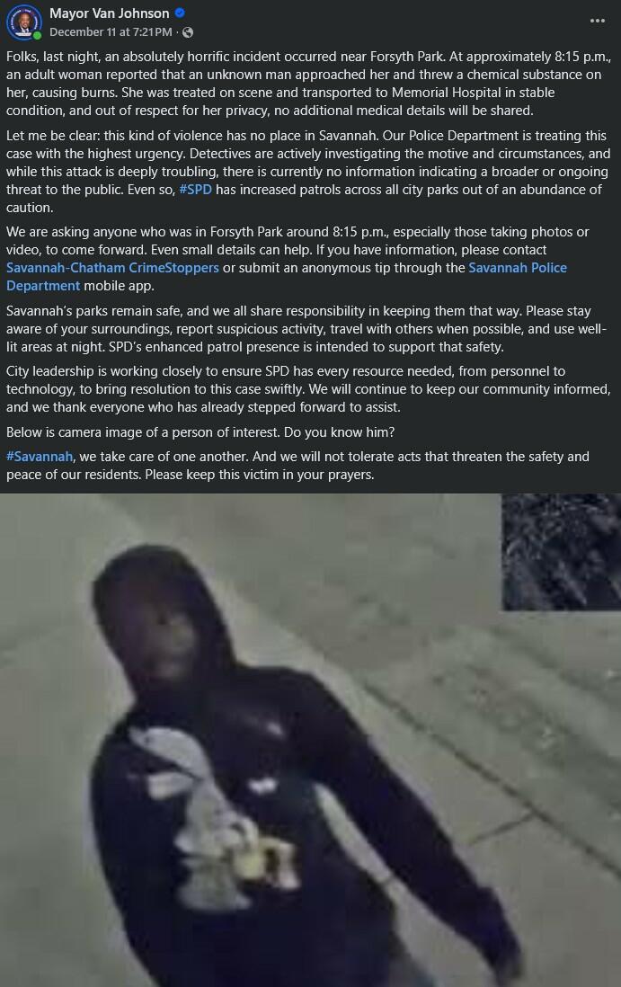 "Our Police Department is treating this case with the highest urgency," said Savannah Mayor Van Johnson in a Thursday https://www.facebook.com/share/p/1BiwdTdE4Q/