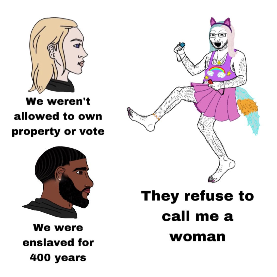 Coopting the oppression of those who were property under the law, and which law defined based on observable reality and medical confirmation