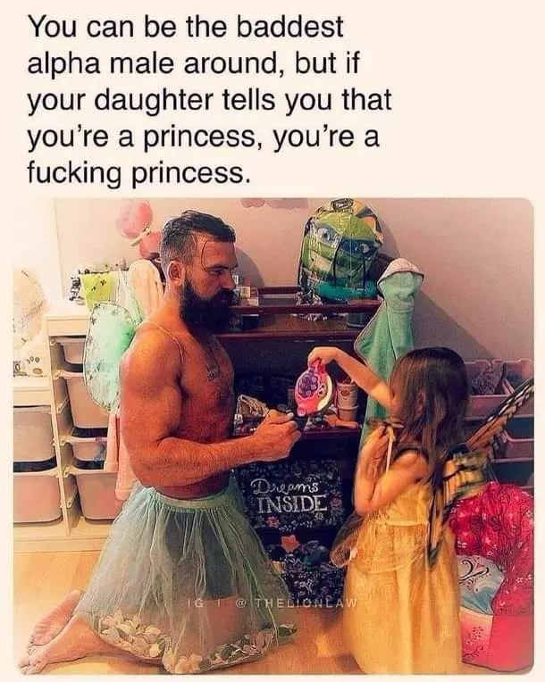 putting aside for a second that I hate the whole alpha/beta/etc crap, this is exactly what makes a man the baddest ass alpha around. Extra bonus if he's willing to go play outside with her dressed like that. #zfg