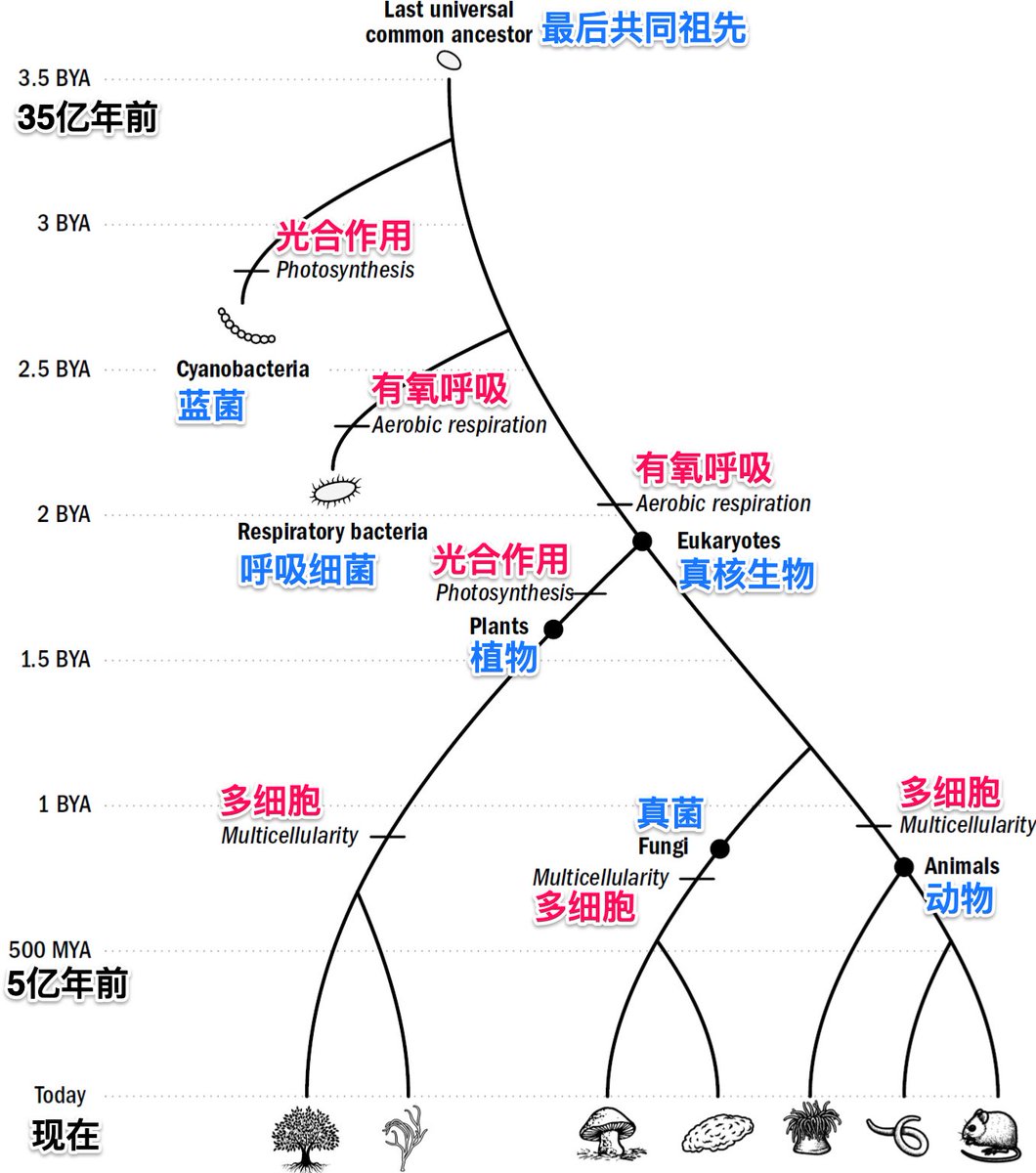 7. 生存竞争压力下,演化出比单细胞大百倍的真核生物,成为动、植物和真菌共同祖先。