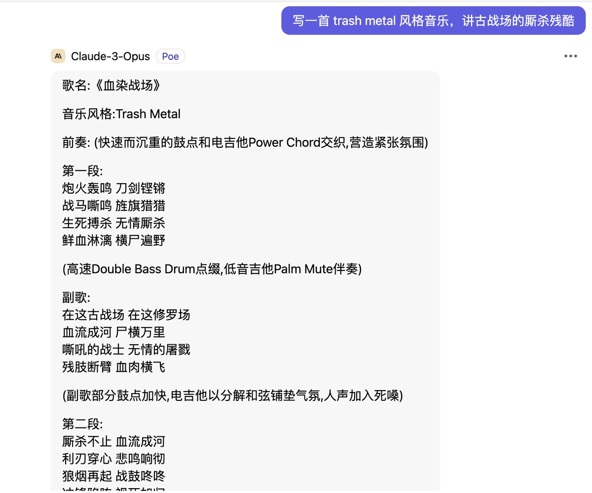 Claude-3-Opus写歌词,Suno v3生成音乐,真的让人刮目相看。 https://t.co/d5HO8Gu0ct