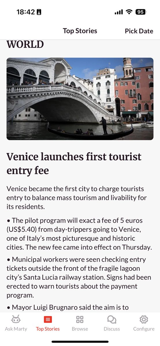 一个 AI 驱动的新闻 App,名字叫 otherweb, 首tab 是一个对话机器人,帮总结当天新闻(有必要吗?)