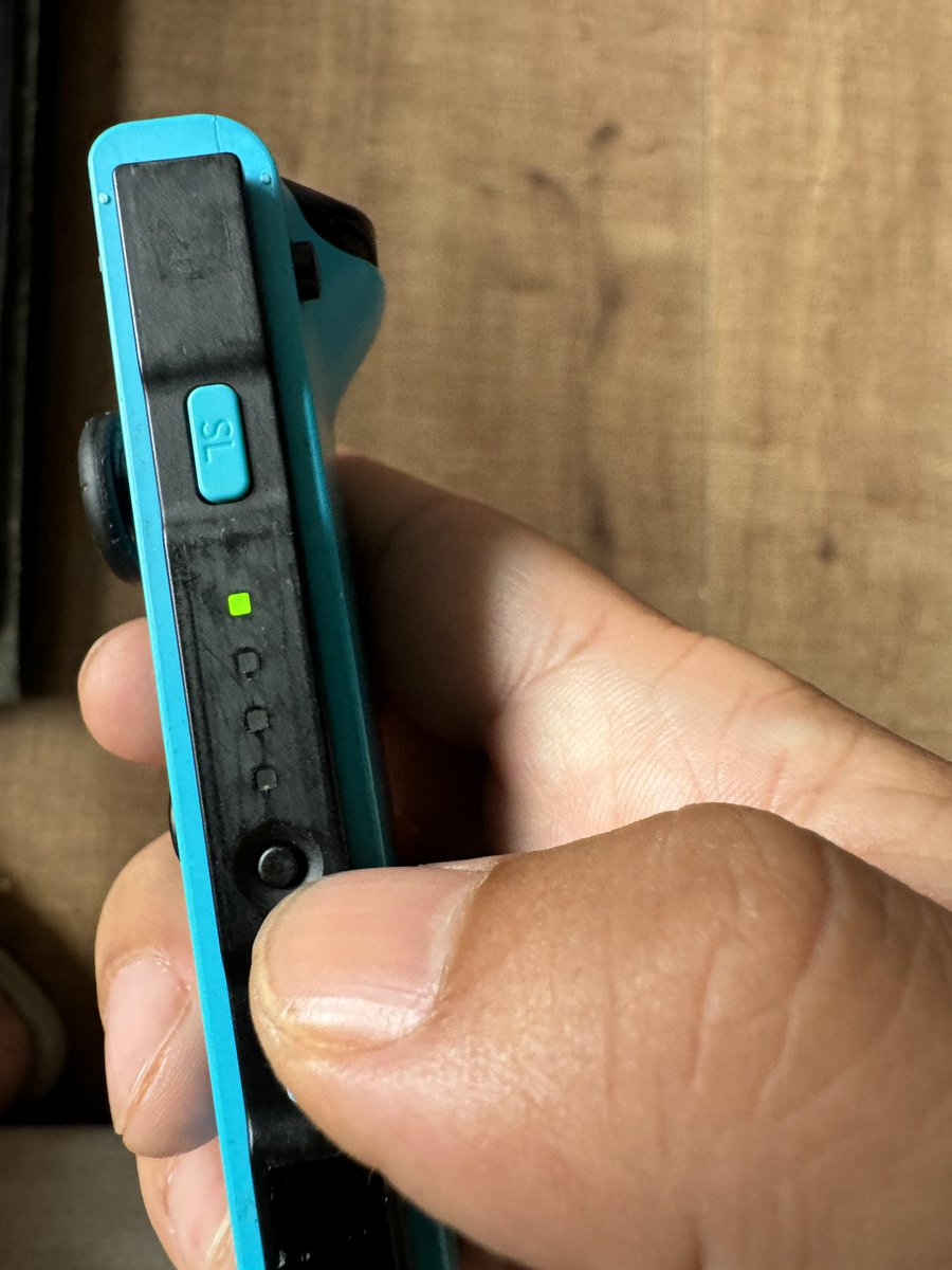 如果想连 switch 手柄,可拿出任意一个 joy-con,按电量指示灯右侧的小黑点,打开手机蓝牙查找配对即可。