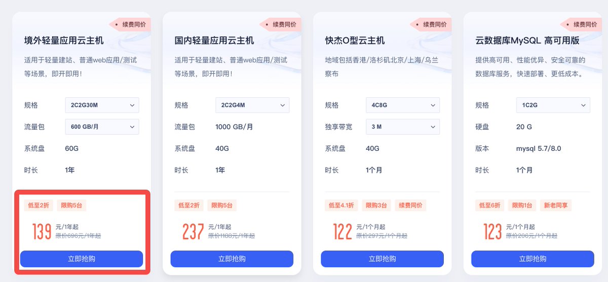 2G内存,60G SSD硬盘,每月600G流量,搭个Wordpress足够。