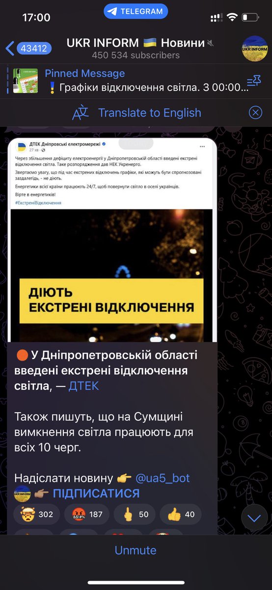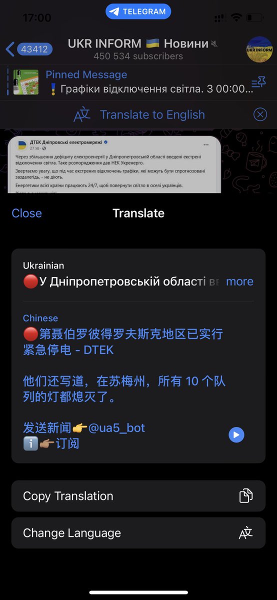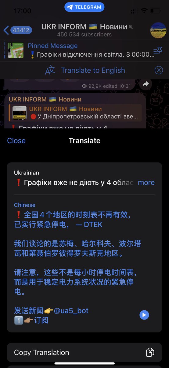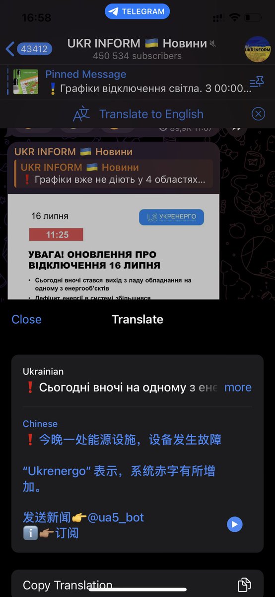 🇺🇦又有一座电站停止工作了,全国四省再次完全停电!当然我这里也在一小时前就停电了。 https://t.co/onBoByOFQi