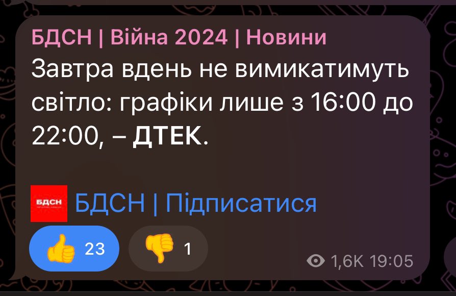 好消息,明天白天也不会停电😃 我要抓紧工作,不看新闻了🗞️ Slava Ukraine 🇺🇦 https://t.co/h0lYhKUbqU