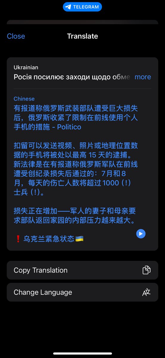 🇺🇦有报道称俄罗斯武装部队遭受巨大损失后,俄罗斯收紧了限制在前线使用个人手机的措施 - Politico https://t.co/ZaTkFQKuYM