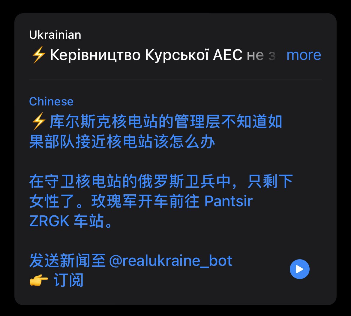 ⚡️库尔斯克核电站的管理层不知道如果部队接近核电站该怎么办
