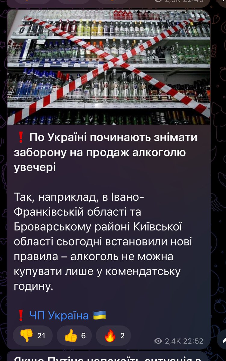 例如,在伊万诺-弗兰科夫斯克地区和基辅地区的布罗瓦里地区,今天制定了新规定——只有在宵禁期间才能购买酒精。 https://t.co/EAhs3LtKjZ