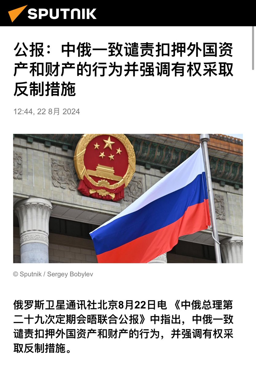 公报:🇨🇳🇷🇺中俄一致谴责扣押外国资产和财产的行为并强调有权采取反制措施 😳😑