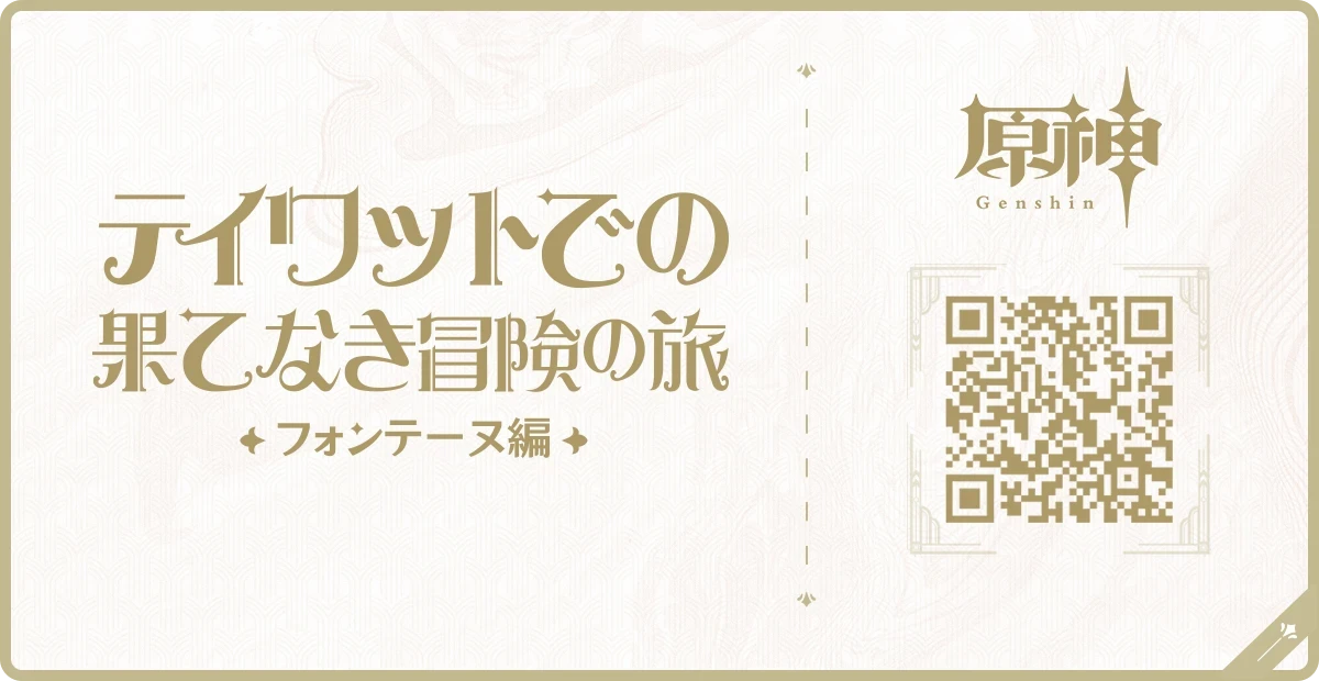 このイベントはやばいのでは!!! - 「テイワットでの果てなき冒険の旅・フォンテーヌ編」会場観覧申込 「テイワットでの果てなき冒険の旅」テーマ展覧会シリーズは、オープンワールド型RPG『原神』が主催しています。「フォンテーヌ」の実装も近づいてきた今日この頃。原神はゲームアートコンテンツ展覧会「テイワットでの果てなき冒険の旅・フォンテーヌ編」を開催し、旅人の皆さんを新たな冒険の旅へ招待します。 https://act.hoyoverse.com/ys/event/e20230804reserve/index.html?game_biz=hk4e_global&hyl_presentation_style=fullscreen&hyl_landscape=true&hyl_auth_required=true&hyl_hide_status_bar=true&utm_source=share&utm_medium=native&utm_campaign=web
