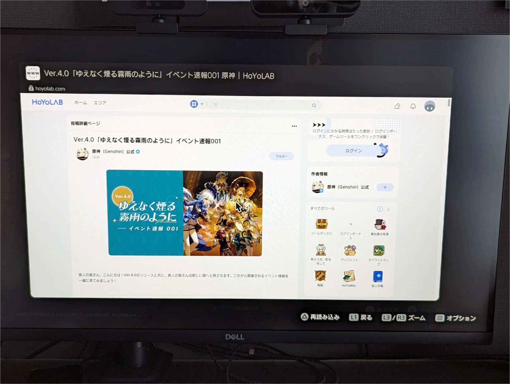 SIE 版、内部ブラウザで HoYoLab 開くのか…