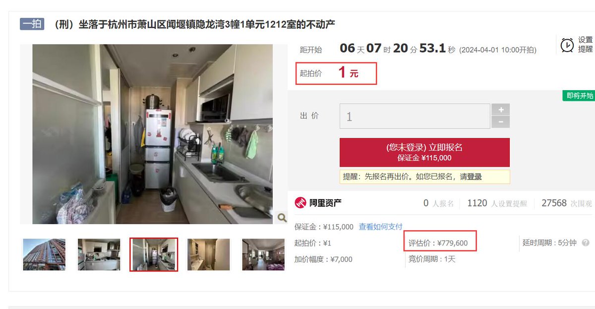 #杭州1元法拍房 目前该房77.9万元,位置虽然有点偏,但毕竟是仍属于杭州市区范围,1元起拍也就是说做好了成交价低于评估价的准备。