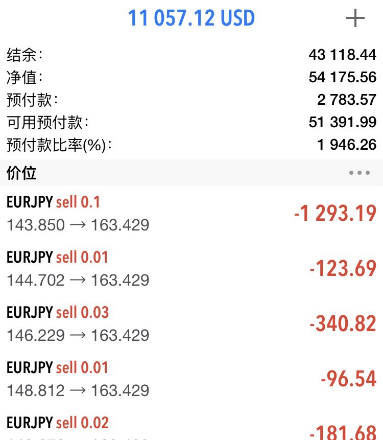 杠杆不会引发爆仓,重仓才会,如图0.1手对应5万美金可用预付款,除非日本灭灭国,否则永远不会爆仓,但是如果是1,这就是重仓,日元贬值超预期就会爆仓