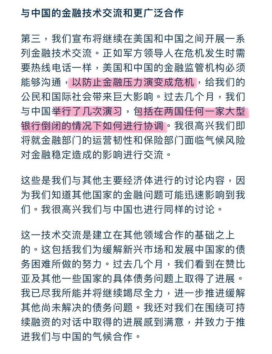 耶伦来华访问跟中国达成协议🤝:与中国举行演习,包括两国任何一大型银行倒闭!