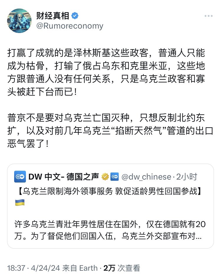 打赢了成就的是泽林斯基这些政客,普通人只能成为枯骨,打输了俄占乌东和克里米亚,这些地方跟普通人没有任何关系,只是乌克兰政客和寡头被赶下台而已!
