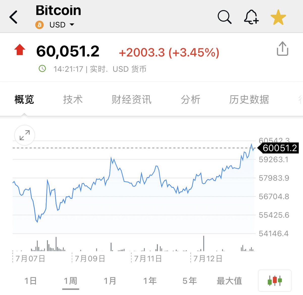 川普枪击案发生后,比特币在避险情绪推动下,上涨2000美元,涨幅3.45%,而且还在扩大! https://t.co/GOc4D4c43f