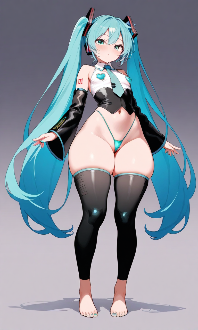 #AIgenerated #R-18 #pixiv今日のお題 #初音ミク #VOCALOID #HatsuneMiku #thighs #thick #waifu #microbikini