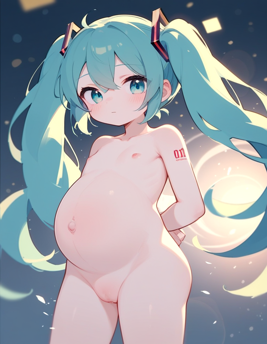 #AIgenerated #R-18 #pregnantbelly #pregnantchild #flatchest #loli #swollenbelly #naked #初音ミク #ボーカロイド #ロリニティ