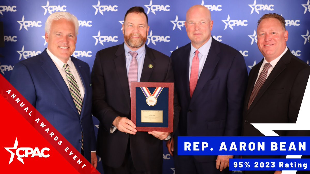 Congratulations Rep. Aaron Bean on receiving the Award for Conservative Excellence from CPAC.