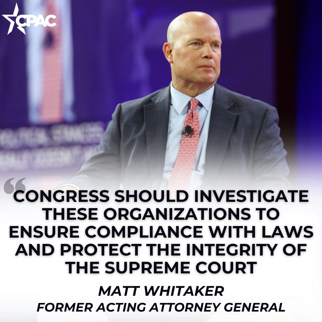 Former Acting U.S. Attorney General & CPAC Board Member @MattWhitaker46: "The progressive Left and their media allies have been trying to intimidate Justice Samuel Alito by attacking his wife for merely flying a flag. This is part of a coordinated effort to pressure Republican-appointed justices in high-profile cases. Such attacks must stop, and Congress should investigate these organizations to ensure compliance with laws and protect the integrity of the Supreme Court."