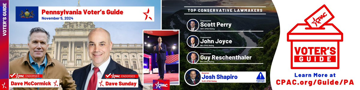 Voting is underway in Pennsylvania, make sure to get out to support CPAC Endorsed candidates including Dave McCormick and Dave Sunday. Check out the Pennsylvania Voters Guide at https://t.co/XRKcVyUAHG. https://t.co/b8kWiCKmKO