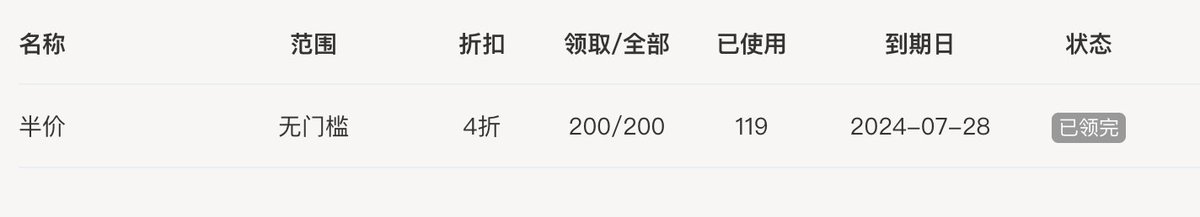 优惠券用完了 再发200个 https://t.co/CX5VS5mzmY