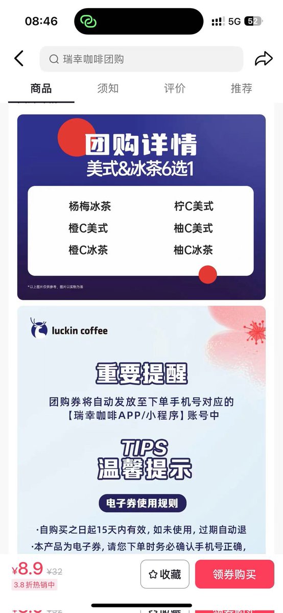 第三步,进入瑞幸小程序/app购买