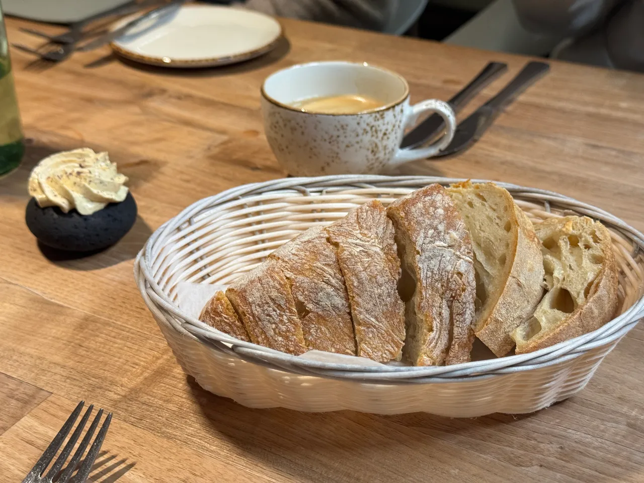 晩御飯のパン、コロッケ、イワナ