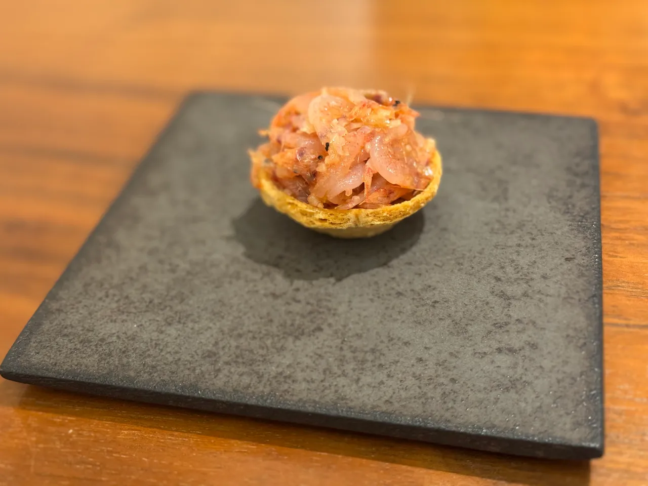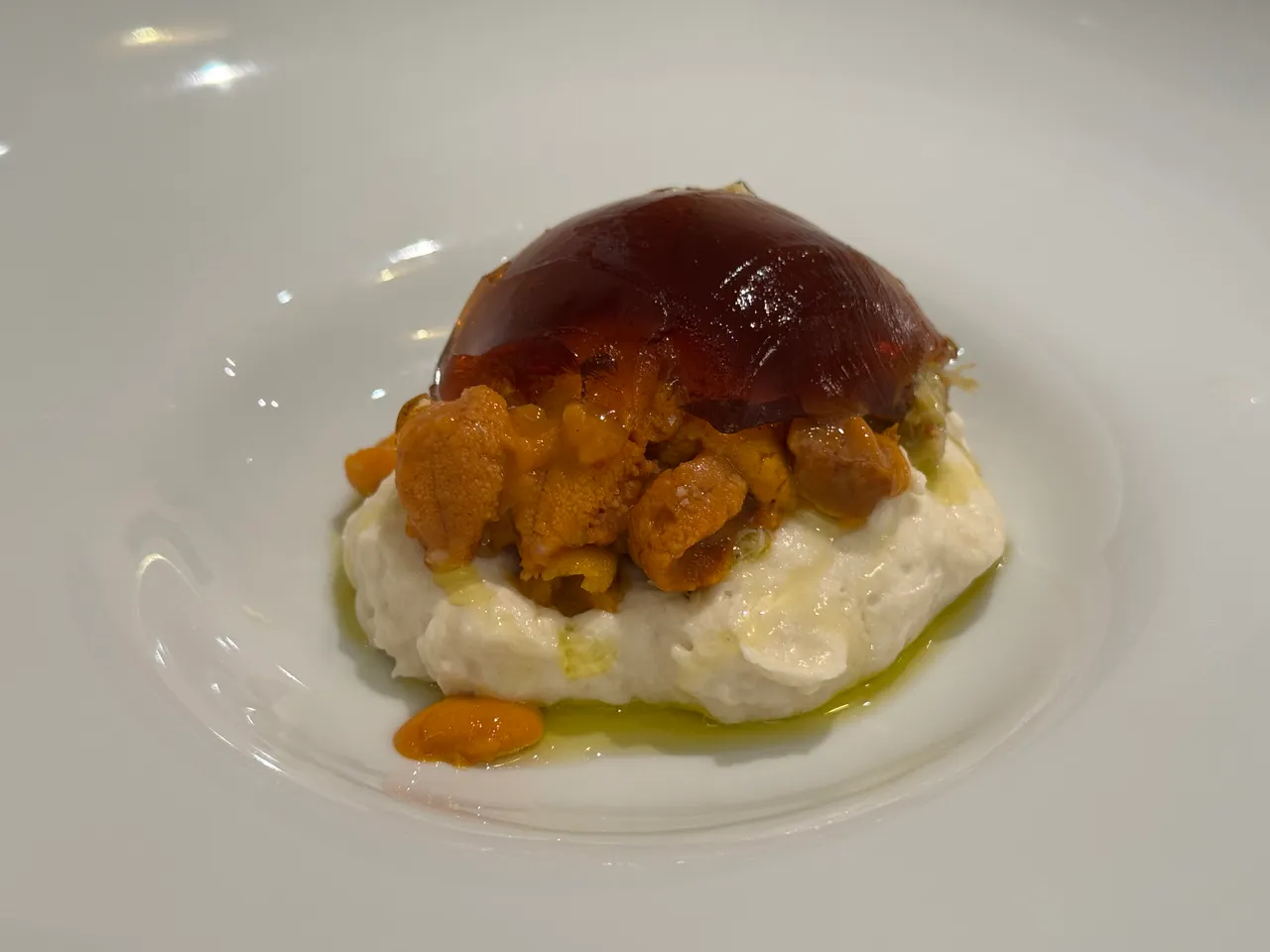 前菜2:淡路島玉ねぎムースとズワイガニ、生ウニとポン酢ジュレ