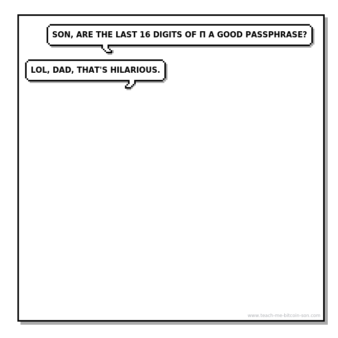 Dad: Son, are the last 16 digits of π a good passphrase?