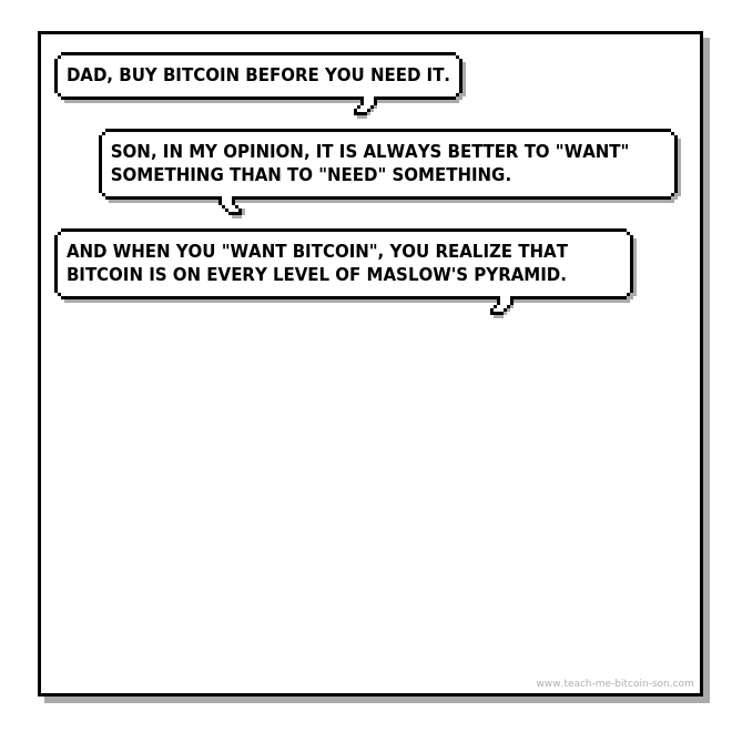 Son: And when you "want bitcoin", you realize that Bitcoin is on every level of Maslow's pyramid.
