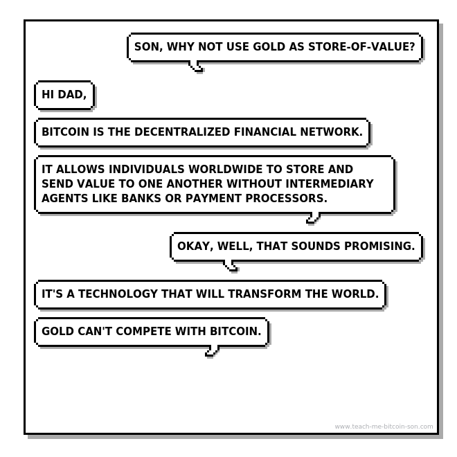 Dad: So, "Saving in bitcoin is investing in Bitcoin."