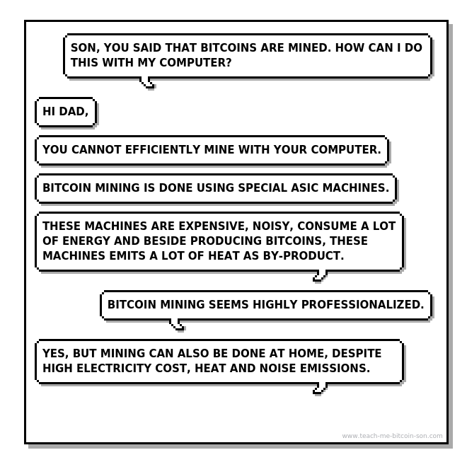 Dad: Son, you said that Bitcoins are mined. How can I do this with my computer?