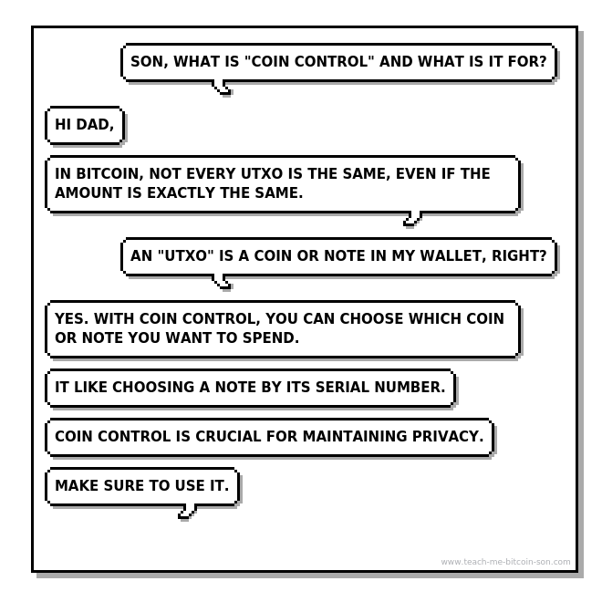 Son: Yes. With coin control, you can choose which coin or note you want to spend.