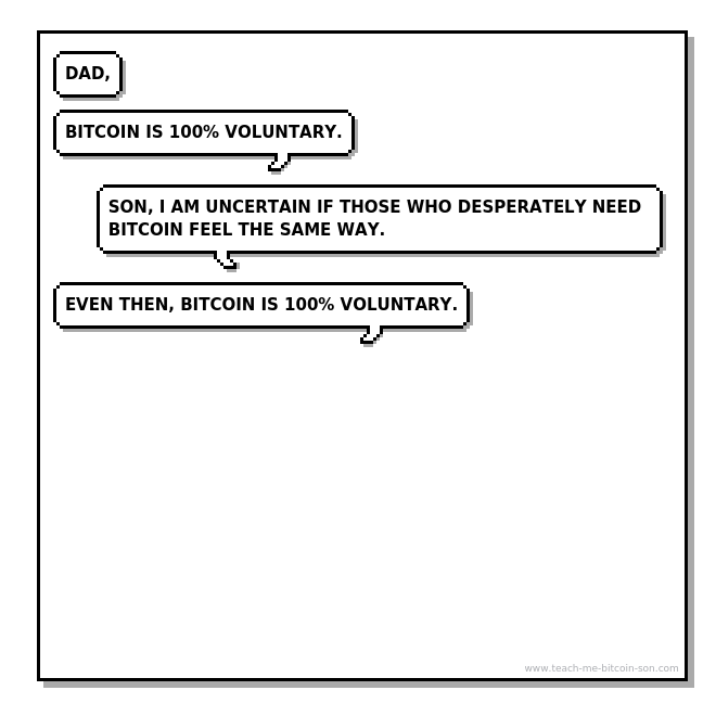 Dad: Son, I am uncertain if those who desperately need Bitcoin feel the same way.