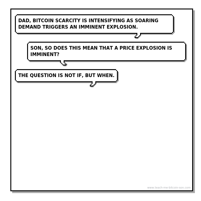 Son: Dad, Bitcoin scarcity is intensifying as soaring demand triggers an imminent explosion.