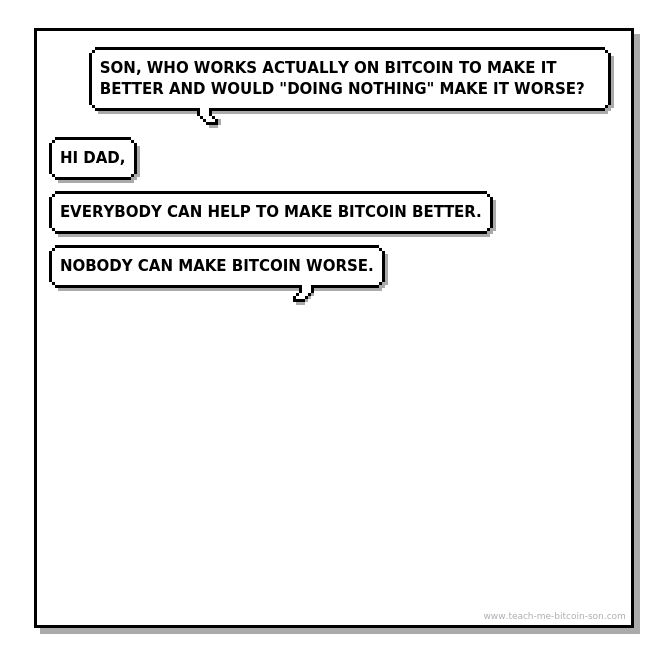 Dad: Son, who works actually on Bitcoin to make it better and would "doing nothing" make it worse?