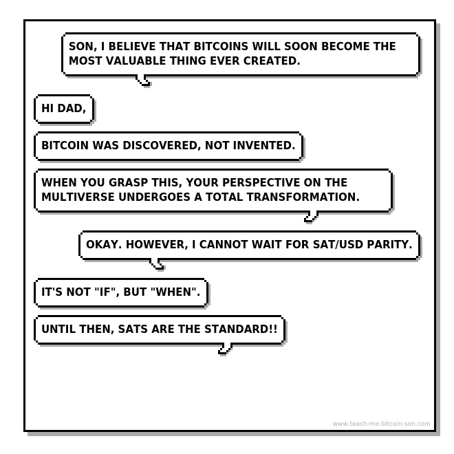 Dad: Okay. However, I cannot wait for SAT/USD parity.