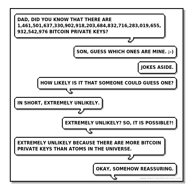 Son: Dad, did you know that there are 1,461,501,637,330,902,918,203,684,832,716,283,019,655,932,542,976 Bitcoin private keys?